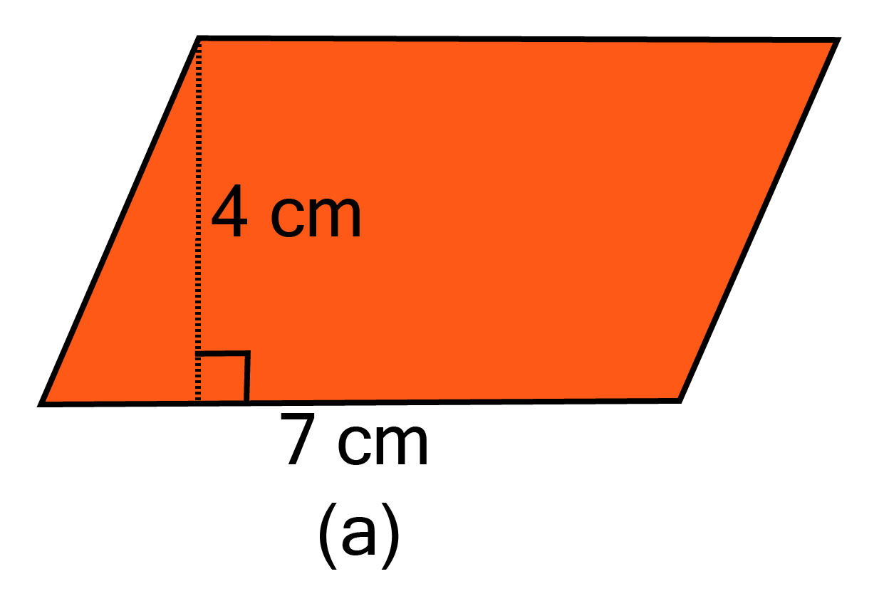 $\therefore $ Area of parallelogram ${\text{ = 7 x 4 = 28 c}}{{\text{m}}^2}$