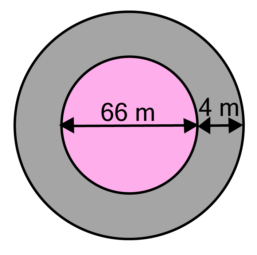 Hence, the circumference of inner and outer circles are ${\text{56}}{\text{.52 m and 119}}{\text{.32 m respectively}}$