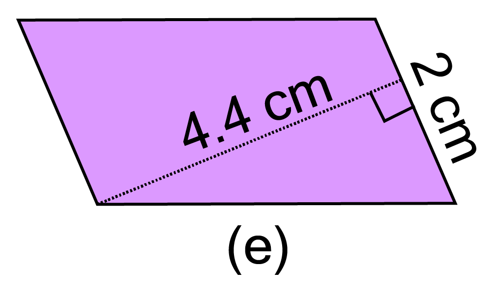 $\therefore $ Area of parallelogram ${\text{ = 2 x 4}}{\text{.4 = 8}}{\text{.8 c}}{{\text{m}}^2}$