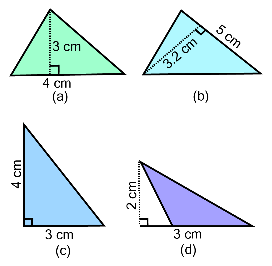 a. Given, base ${\text{ = 4 cm}}$ and height ${\text{ = 3 cm}}$