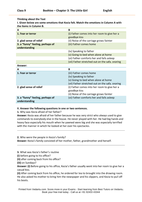 The Little Girl Class 9 – Questions and Answers