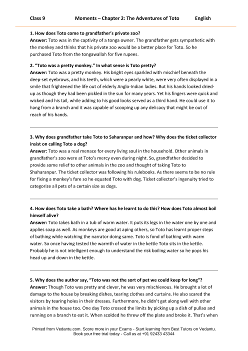 FAQs on NCERT Solutions For Class 9 English Moments Chapter 2 The Adventures of Toto - 2025-26