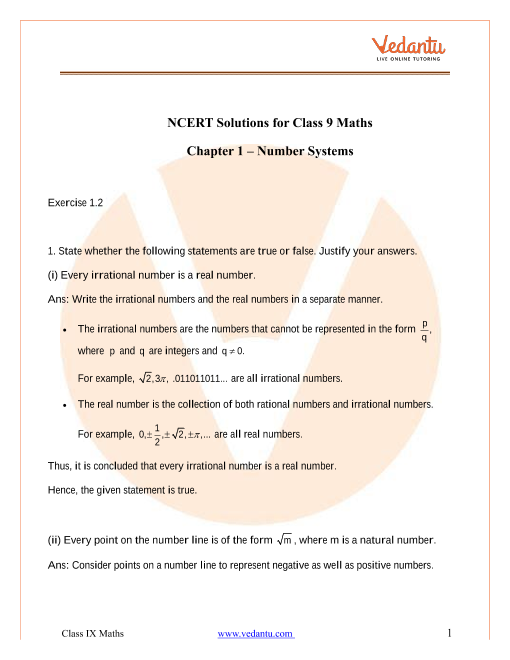 FAQs on NCERT Solutions for Class 9 Maths Chapter 1 Number Systems
