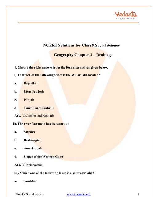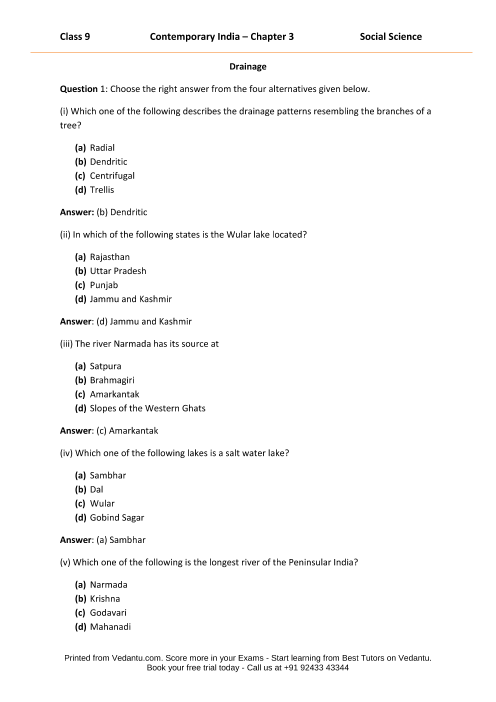Drainage Questions and Answers for Class 9 Students
