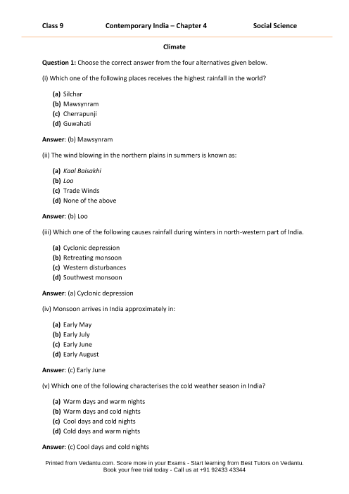 Class 9 Geography Chapter 4 Climate Solutions PDF