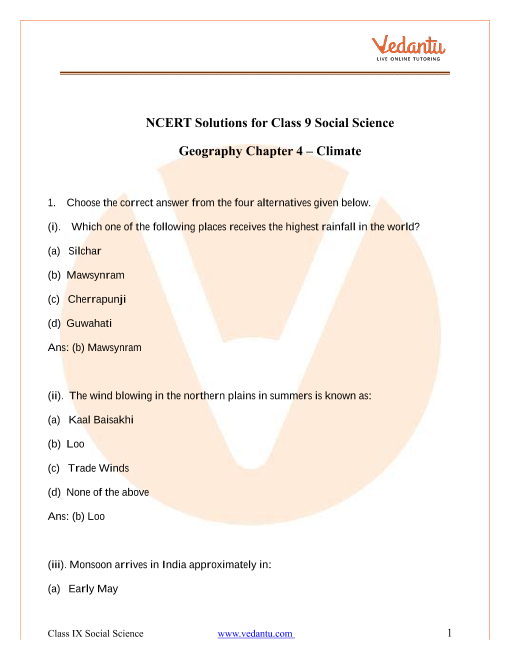 NCERT Solutions for Class 9 Geography Chapter 4 Climate - 2025-26