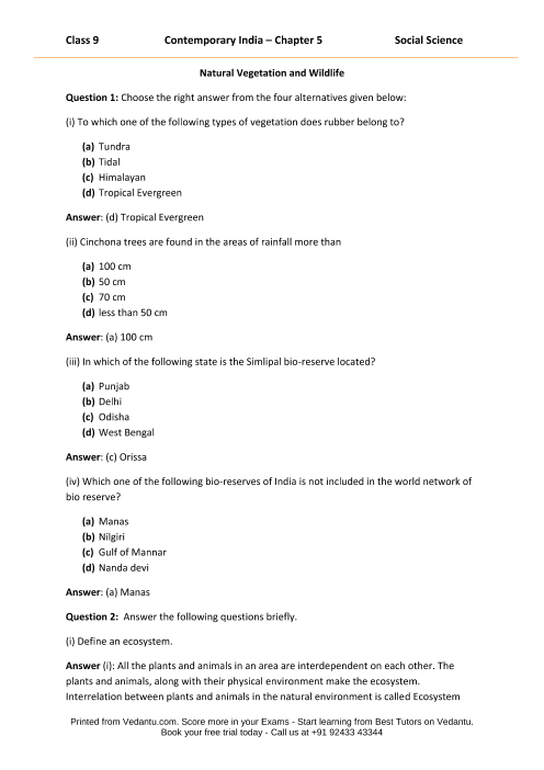 Find SST Complete Natural Vegetation And Wildlife Class 9 Questions And Answers With Detailed Explanations