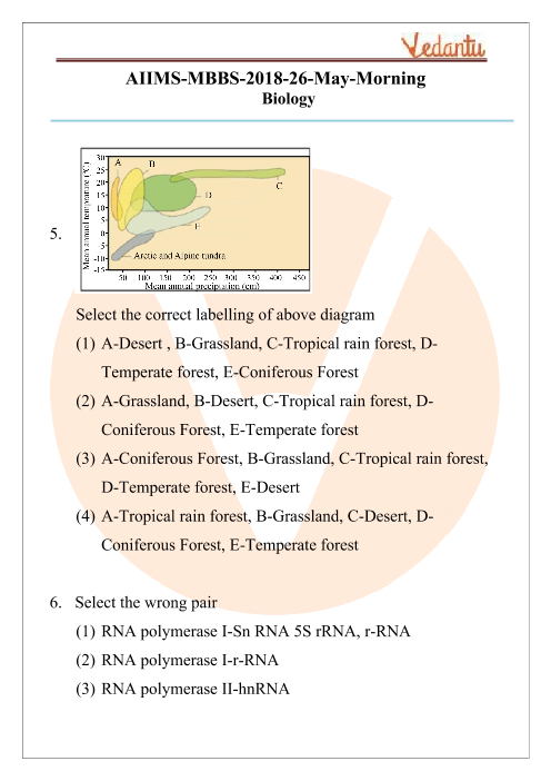 FAQs on AIIMS 2018 Biology Question Paper with Solutions - 26th May 2018 Morning Shift