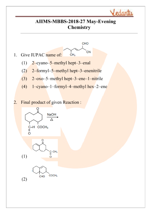 FAQs on AIIMS 2018 Chemistry Question Paper with Solutions - 27th May 2018 Evening Shift