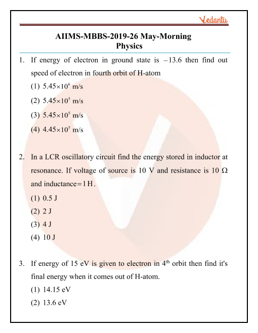 Download Free PDF of 26th May 2019 Morning Shift - AIIMS 2019 Question Paper with Solutions on Vedantu