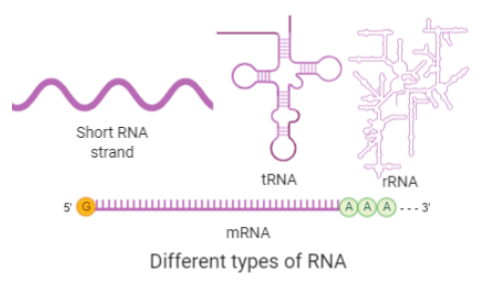 Ribosomal RNA (rRNA): Forms the structure of ribosomes, where proteins are synthesised.