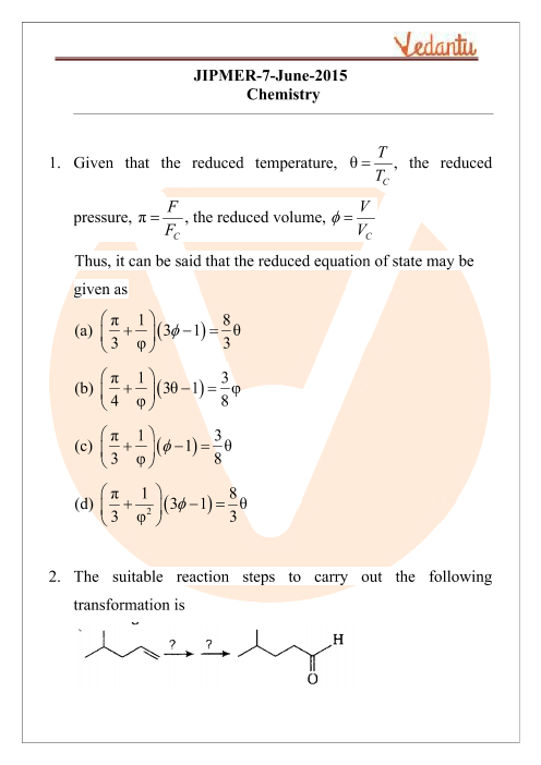 The Chemistry Question Paper with Solutions of JIPMER 2015 will help you in the following ways: