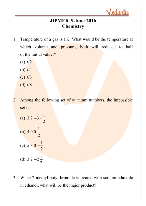 Download Free Chemistry Question Paper with Solutions JIPMER 2017 on Vedantu