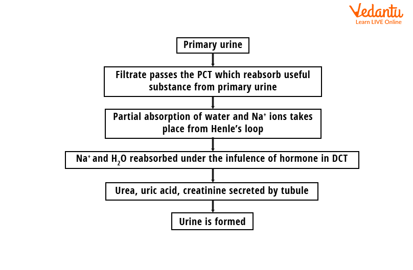 The following flowchart explains the urine formation mechanism in a step-by-step manner.