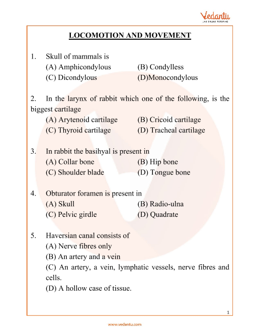 FAQs on NEET Locomotion and Movement Important Questions