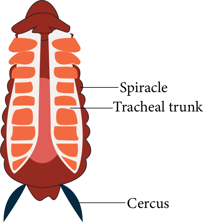 It consists of a cluster of tubes equivalent to the trachea that end in ten pairs of small openings known as spiracles. These spiracles can be noticed side to side in their bodies.