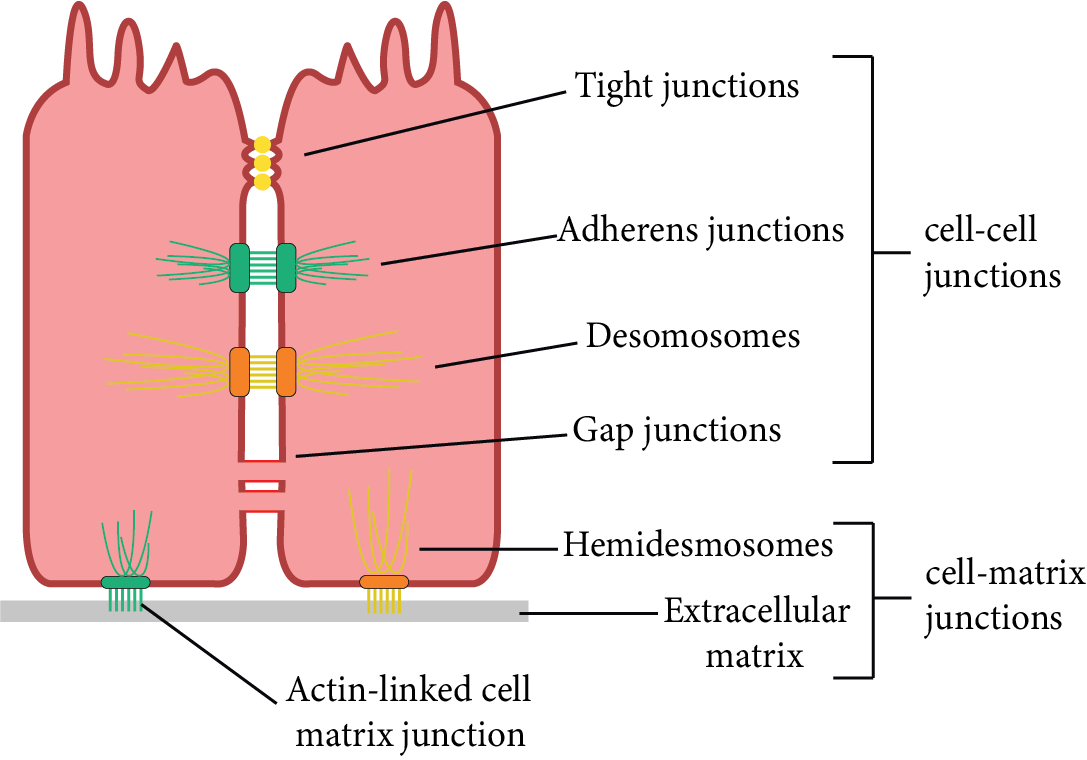 Epithelia have one free surface facing a body fluid or the outside environment. Their cells are structurally and functionally connected at junctions.