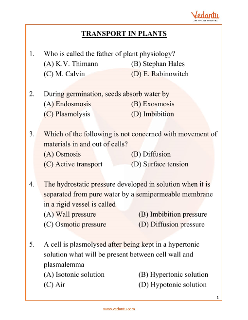 FAQs on Transport in Plants Important Questions and Solutions for NEET