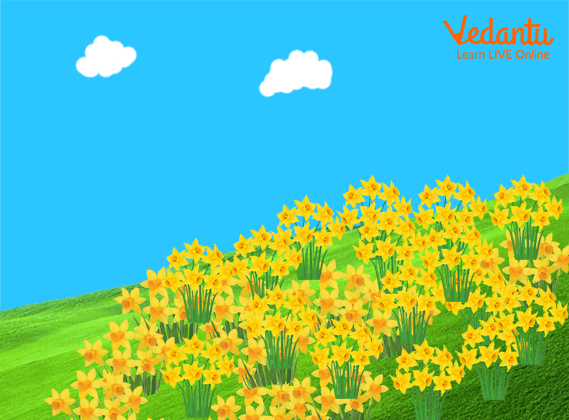 Before you get confused, let us tell you ‘I Wandered Lonely as a Cloud’ and ‘Daffodils’ are the same poem by William Wordsworth. Do you love flowers and gardening? Wouldn’t it be lovely if you had a picnic by a lake with rows of flowers on a sunny day? So, our poet, William Wordsworth, had once gone on a casual stroll in such a place and then he wrote this beautiful poem for us to read. Close your eyes and let an elder read I Wandered Lonely as a Cloud poem to you. Imagine yourself as a cloud floating above a lake with bunches of daffodils on its side.