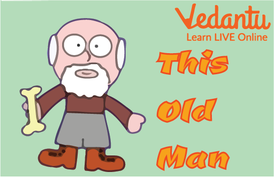 The old man comes and taps on one of the body parts or clothing of the kid and gives a dog a bone and leaves. He continues to do it ten times. This rhyme is quite interesting for the kids to sing and do the same action. The action of the old man can be mimicked in many ways.