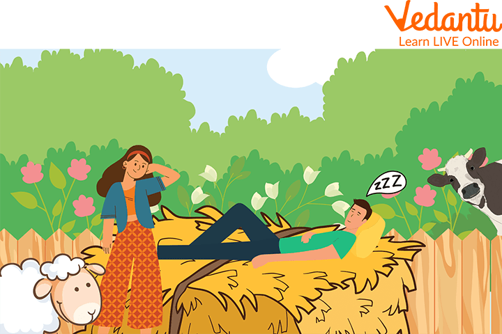 There could be no reason for how the speaker is revealing the exact position where the boy is sleeping. In fact, the poet did not reveal why the boy was “Fast asleep”. The only reason this boy could be fast asleep is he could be very tired from working. This is the reason why we can see the young boy sleeping under the haystack. Check out the young blue boy sleeping under the haystack in the picture below:-