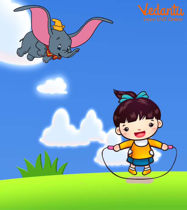 Miss Mary Mack skipping while watching an elephant fly in the sky