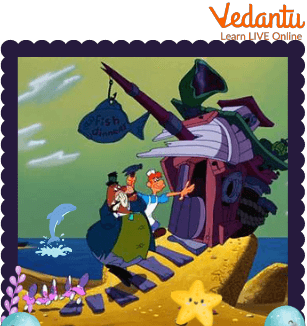 The eldest oyster answers all questions asked by the walrus. However, the oyster answers only with gestures. For example, he winks, moves his body, shakes hands, and many more.