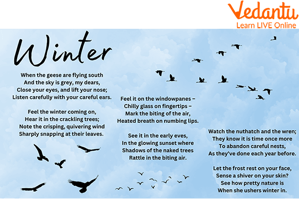In this article, we learnt about the winter poem and its theme and meaning and this poem also gave us information about the winter season.