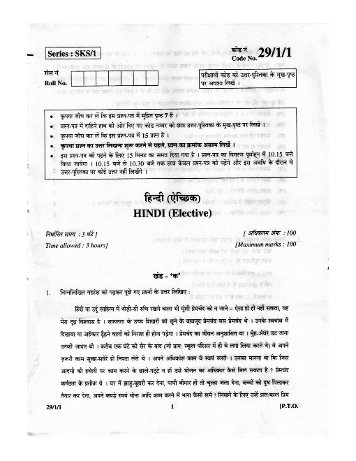 FAQs on Hindi Elective Question Paper for CBSE Class 12 - 2013