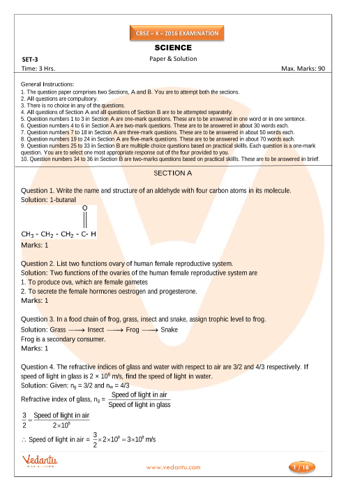 The kind of questions that will come for the main tests will range from multiple-choice questions to long and short answer ones. You will understand them better if you go to the CBSE Class 10 Science question paper with solutions (2016) on Vedantu. This paper will familiarize you with the question paper format and instill confidence in the minds of those who are not very confident. Solve this paper before you sit for the main tests to do well and perform exceptionally.