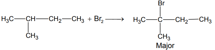 2-Methyl butane reacting with ${ Br }_{ 2 }$ in sunlight mainly gives: