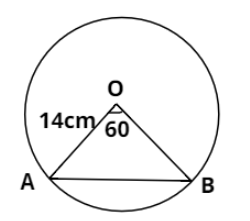 AB is subtending angle ${60^ \circ }$ at the center and the radius of the circle is 14 cm.