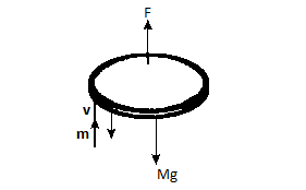 From the given figure, we can see that there is an upward force due to the firing of bullets that is a change in momentum of the bullet. The velocity of the bullet is v and the rebounding velocity will be –v. There is also downward force gravitational force shown as Mg.