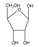 Considering option (B),Ribose. Ribose is a simple sugar and carbohydrate with molecular formula ${{C}_{5}}{{H}_{10}}{{O}_{5}}$.The naturally occurring form, d-ribose is a component of the ribonucleotides from which RNA is built.The structure of ribose is as follows: