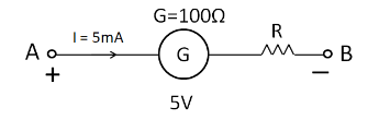 $ \Rightarrow 5{\text{mA}}\left( {100 + R} \right) = 5{\text{V}} $