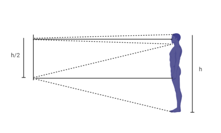 \[{H_{mirror}} = \dfrac{{{H_{body}}}}{2}\]