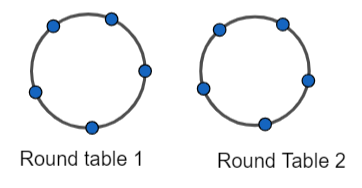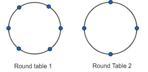 The number of possible rearrangements of 5 persons sitting on the round table = \[\left( 5-1 \right)!=4!\] ………………………………..(2)