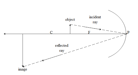 Now if we place an object between focus and center then the image is formed away from the center and the image will be real and inverted. The size of the image will be bigger than an object as shown in the diagram.