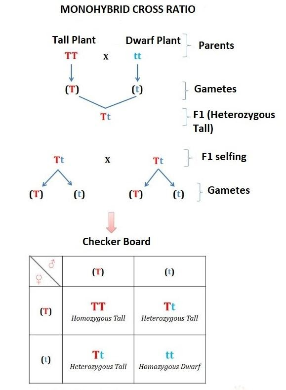 Monohybrid genotypic ratio –\[\;TT:{\text{ }}Tt:{\text{ }}tt\]= \[1:{\text{ }}2:{\text{ }}1\]