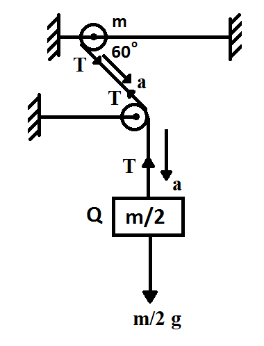 $\left( \dfrac{m}{2} \right)a=\dfrac{mg}{2}-T$