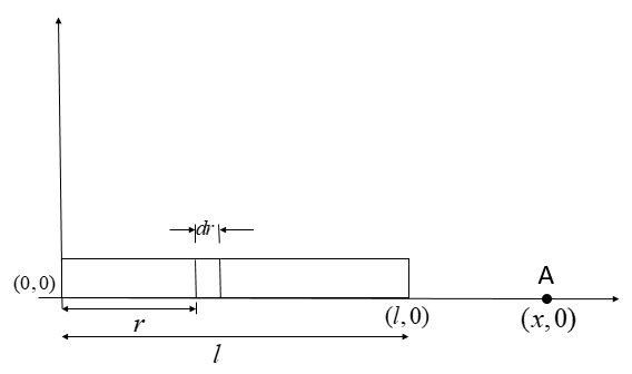Now, to find the potential at point A, we need to integrate this expression from $x$ to $x-l$ as: