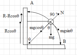 Now, the bead is moving in the wire due to the gravitational force acting on the bead. Let the normal force acting on the bead is N. the normal force acting on the bead will be equal to the weight of the bead when the bead is at point A. as the bead slides along the wire, the normal force on the bead will be equal to the radial component of the weight towards the centre of the circle of which the wire is a part of.