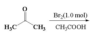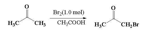 It is given that in reaction 2, acetone reacts with 1.0 mol of bromine in presence of acetone (acidic medium). In this reaction the alpha hydrogen of acetone is replaced by the bromine atom to form alpha bromoacetone.