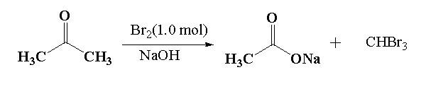 Here, in this question acetone reacts with 1.0 mole of bromine in presence of sodium hydroxide to give sodium salt of acetic acid and a bromoform.