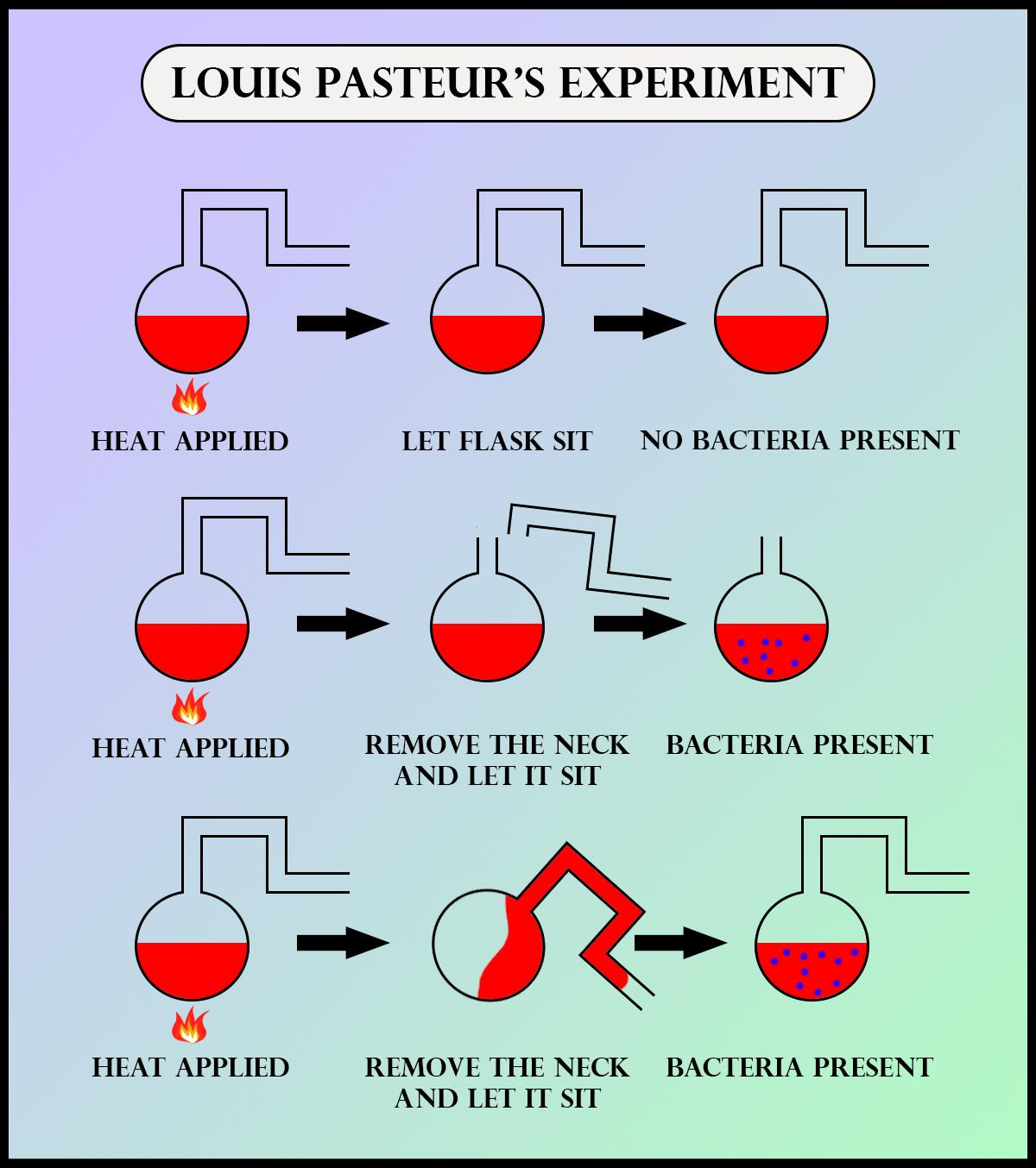 Pasteur’s Experiment: His experiments revealed that only minute organisms can arise from pre-existing organisms. The life can not arise spontaneously under Earth’s conditions.