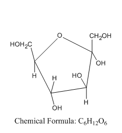 -We know that Fructose is a simple ketone monosaccharide found in plants where it is often bonded to glucose to form the disaccharide sucrose. We also know that fructose is a 6-carbon polyhydroxy ketone and crystalline fructose adopts a cyclic six-membered structure owing to the stability of its hemiketal and internal hydrogen-bonding and this structure is -generally called as D-fructofuranose.