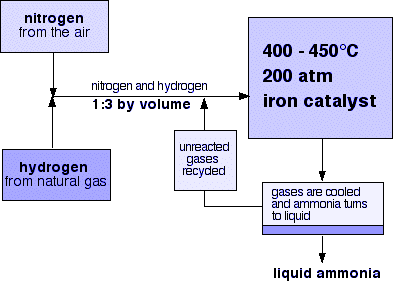 - As you can see in the diagram, in the Haber process, we take nitrogen gas from the air and combine it with a hydrogen atom obtained from natural gas in the ratio 1:3 by volume.