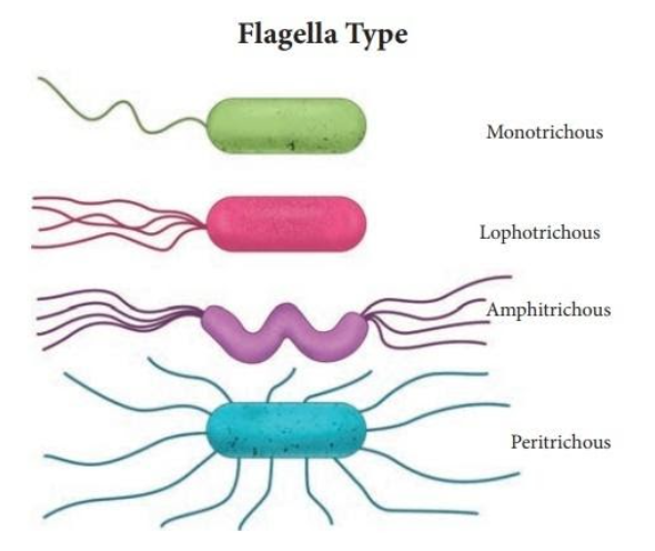- Lophotrichous: Tufts of flagella at one or both sides. For example: spirillum