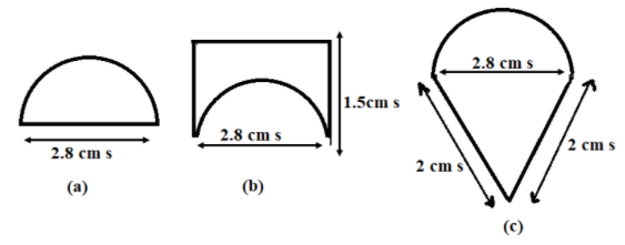 Hint: We will calculate the length of the boundary for each given figure. In the first figure, add the perimeter of the semicircle and the line with length 2.8cm. In figure (b), add the perimeter of the semicircle with the length of three lines as given in the figure. Then, for the figure (c), add the perimeter of the semicircle with the length of two lines as given in the figure. The figure with the maximum length of the boundary is the required answer.