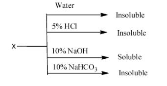 - Generally if X is a base, it would be soluble in acid but in the above given question, the compound does not react with both a weak base that is sodium hydroxide as well as a strong base that is sodium bicarbonate and gives an insoluble compound.